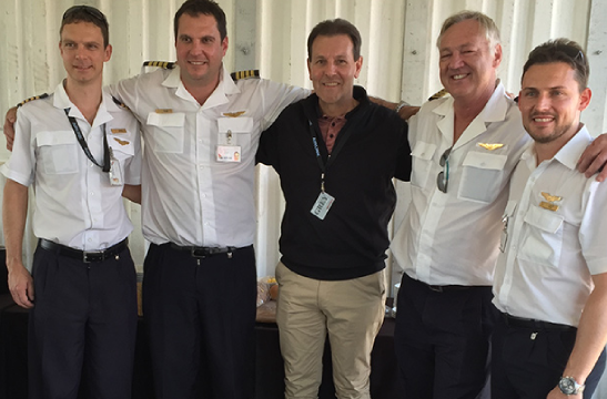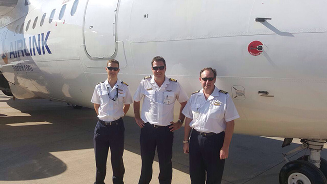 Captain Gareth McGahey, an instructor on the RJ fleet, was selected to act as First Officer during the display and formation flying and Captain Johann du Toit, the Fleet Captain of the RJ Fleet was nominated as safety pilot.
